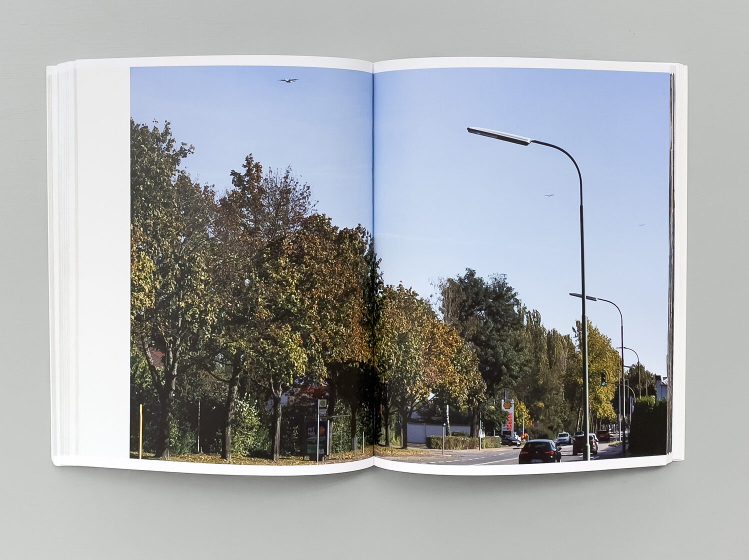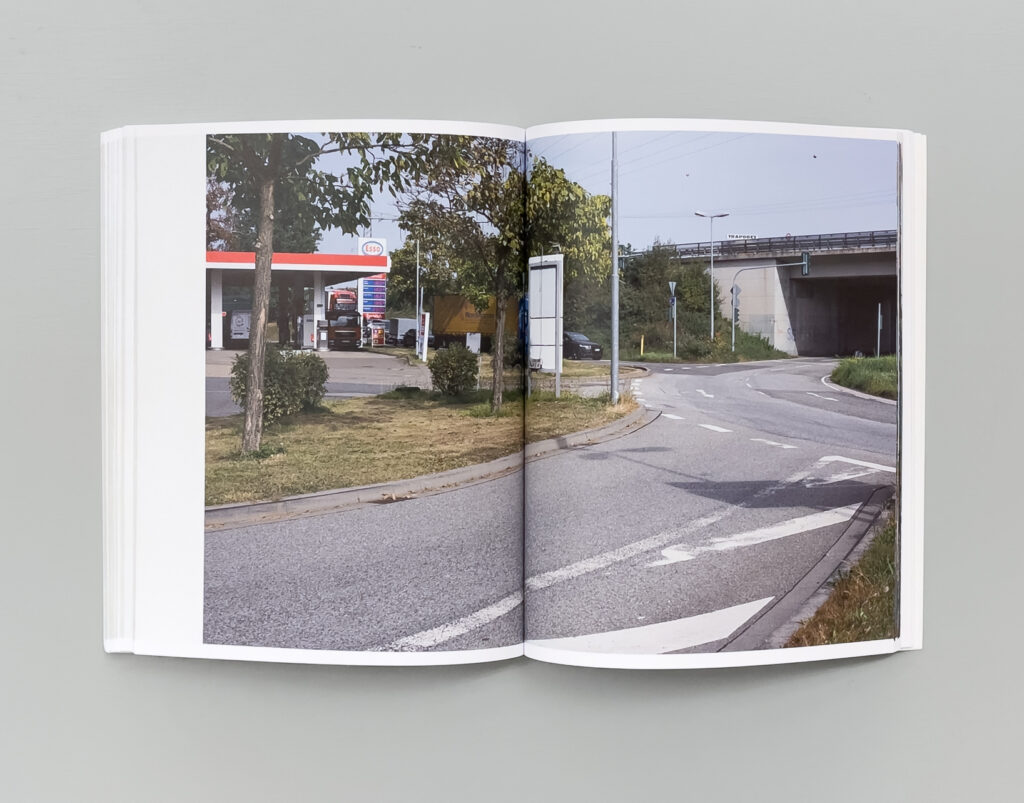 Ohne zu zögern werden die ausschließlich querformatigen Bilder konsequent über die (ja, den, ich weiss) (P)Falz (HiHiHi) gesetzt. Was ich anfangs als ungemein störend empfand, hat sich mittlerweile zu einer Hassliebe entwickelt. Bei jedem anderen Buch wäre ich schlicht genervt, die Seiten jedes Mal so auseinanderdrücken zu müssen, um vielleicht noch etwas Verstecktes zu entdecken. Hier habe ich irgendwann aufgegeben und mich einfach an der Beliebigkeit dieser Stadt erfreut. Der senkrechte Bruch durch die Bilder überhöht diese undurchsichtige Stadt schlussendlich und nimmt den Bildern den missverstandenen Anspruch auf dokumentarische Korrektheit.
