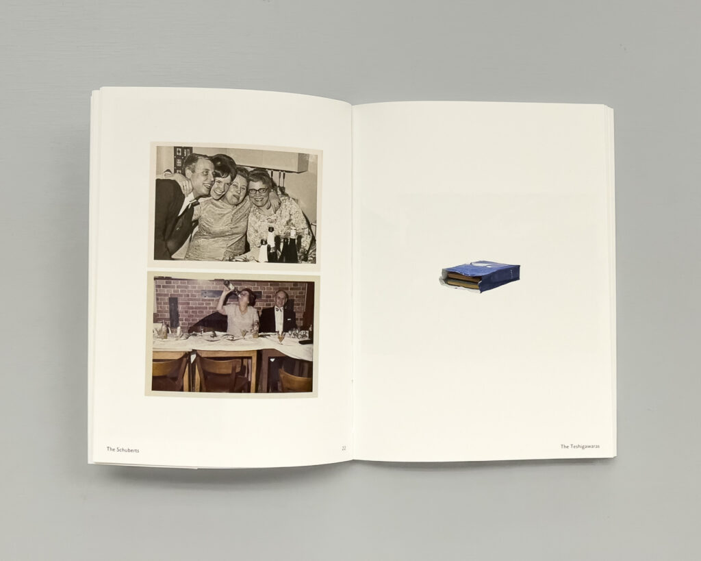 Rie Yamada hat auf Flohmärkten und in Onlinebörsen nach Familienalben und losen Bildersammlungen gesucht und sich genau zehn davon zugelegt: fünf aus Deutschland (wo sie lebt), fünf aus Japan (wo sie geboren wurde). Im Buch wie im Katalog finden sich auch Bilder der versandten Boxen und Umschläge – ein guter Kniff, um darauf hinzuweisen, dass der Begriff Familie auch einfach in einen Karton passt.